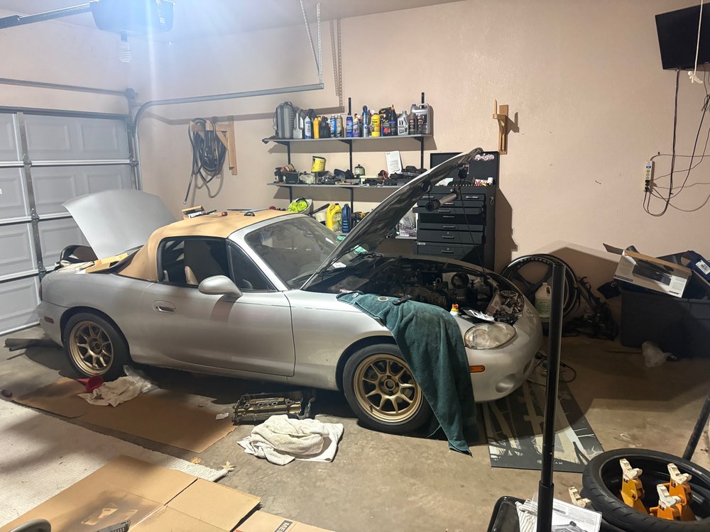 For the past 9 months, the Miata has been in a sorry state of hibernation. An advanced-timing code, followed by a growing hesitation on start-up and eventual complete loss of power. The primary suspects are a stretched timing belt or sheared keyway (please god no.) This leads us to the first major mistake in my Miata ownership journey - creating a maintanence plan in a paper notebook and then forgetting it existed. As I dug back through the history of receipts from pervious owners, I found zero evidence of a single timing belt change in the car's history. We're north of 150,000 miles.. yikes.